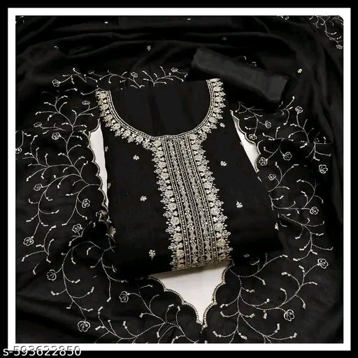Name: Heavy Vichitra Embroidered Dress Material With Heavy Neck And Lace (Unstitched)