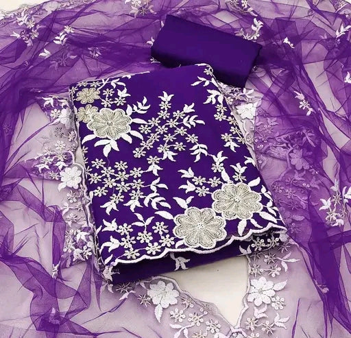Looking for a stylish yet affordable dress material? This Net Embroidered Dress Material is perfect for weddings, parties, and festive wear – all at a very low price!